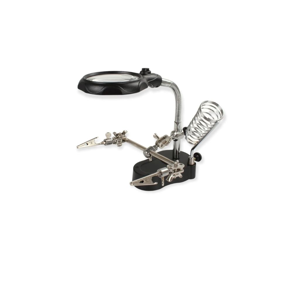 🛠️ Asistente de taller: La herramienta definitiva para trabajos de micro-soldadura y relojería. Cuenta con una lupa de doble aumento y un sistema de iluminación LED integrado sobre un brazo flexible que permite dirigir la luz y la visión exactamente donde la necesitas, manteniendo tus manos libres para trabajar con total comodidad.