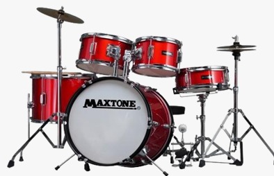 BATERÍA DE 5 PIEZAS CON PLATOS DE ACERO Y SILLA ROJO