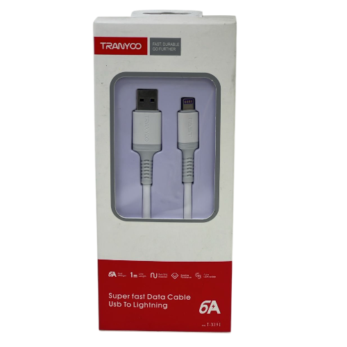CABLE TIPO IPHONE FAST 6AMP BLANCO 1M TRANYOO