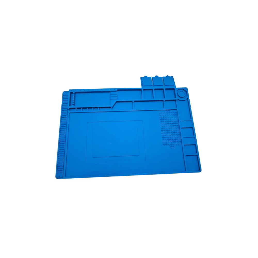 🛡️ Seguridad técnica: Tapete de silicona de alta calidad diseñado para resistir altas temperaturas de pistolas de calor y cautines. Su propiedad antiestática protege los componentes sensibles de descargas ESD, mientras que sus compartimentos organizadores mantienen tornillos y piezas pequeñas en su lugar durante el desensamble.